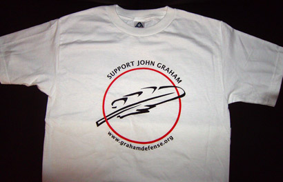 an den John Graham Defense Fond . Wenn Sie $ 50,00 oder mehr über das nachfolgend erwähnte Online-Zahlungssystem spenden, tragen Sie einfach die Bitte um Übersendung eines T-Shirts in das Kommentar-Feld ein, oder schicken Sie ihre Bestellung zusammen mit einem Scheck per Post. Bitte geben Sie ihre Post-Adresse an, und die bevorzugte Größe für das T-Shirt ( S, M, L und XL sind erhältlich )